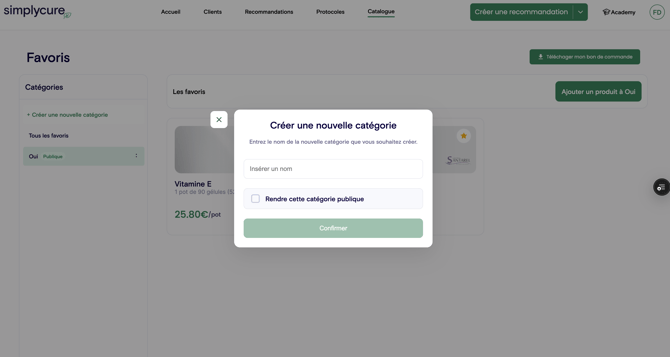 Notre plateforme vous permet d’ajouter des produits favoris pour faciliter vos recommandations et créer des ensembles de compléments adaptés à des besoins spécifiques. Que vous souhaitiez partager des produits fréquemment recommandés ou organiser des sélections ciblées, cette fonctionnalité est idéale pour vous ! 💊